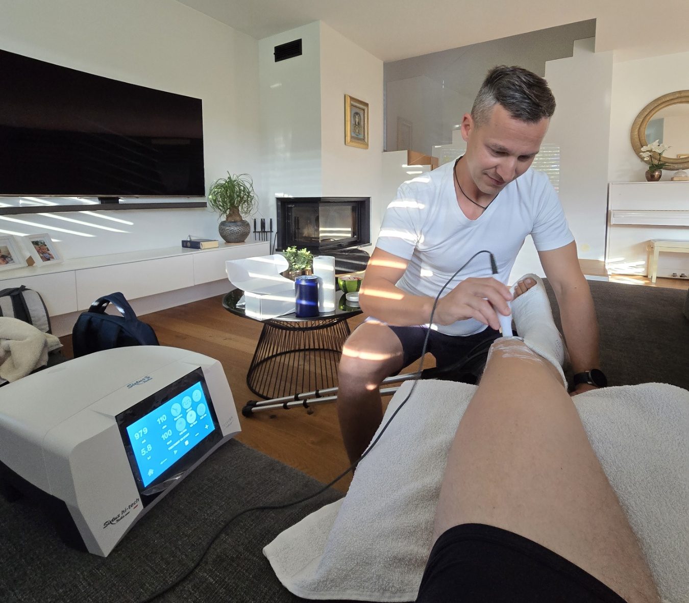 Pri nas lahko kupite vadbene pripomočke ali najamete elektrostimulator (elektroterapija na domu za krepitev ob oslabelosti mišic ali tens – protibolečinska terapija).